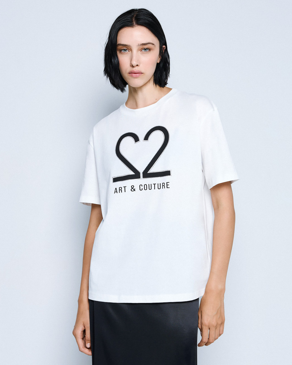 Μακό μπλούζα με κοντά μανίκια και τύπωμα Art & Couture. Διαθέτει λεπτομέρειες από στρας.