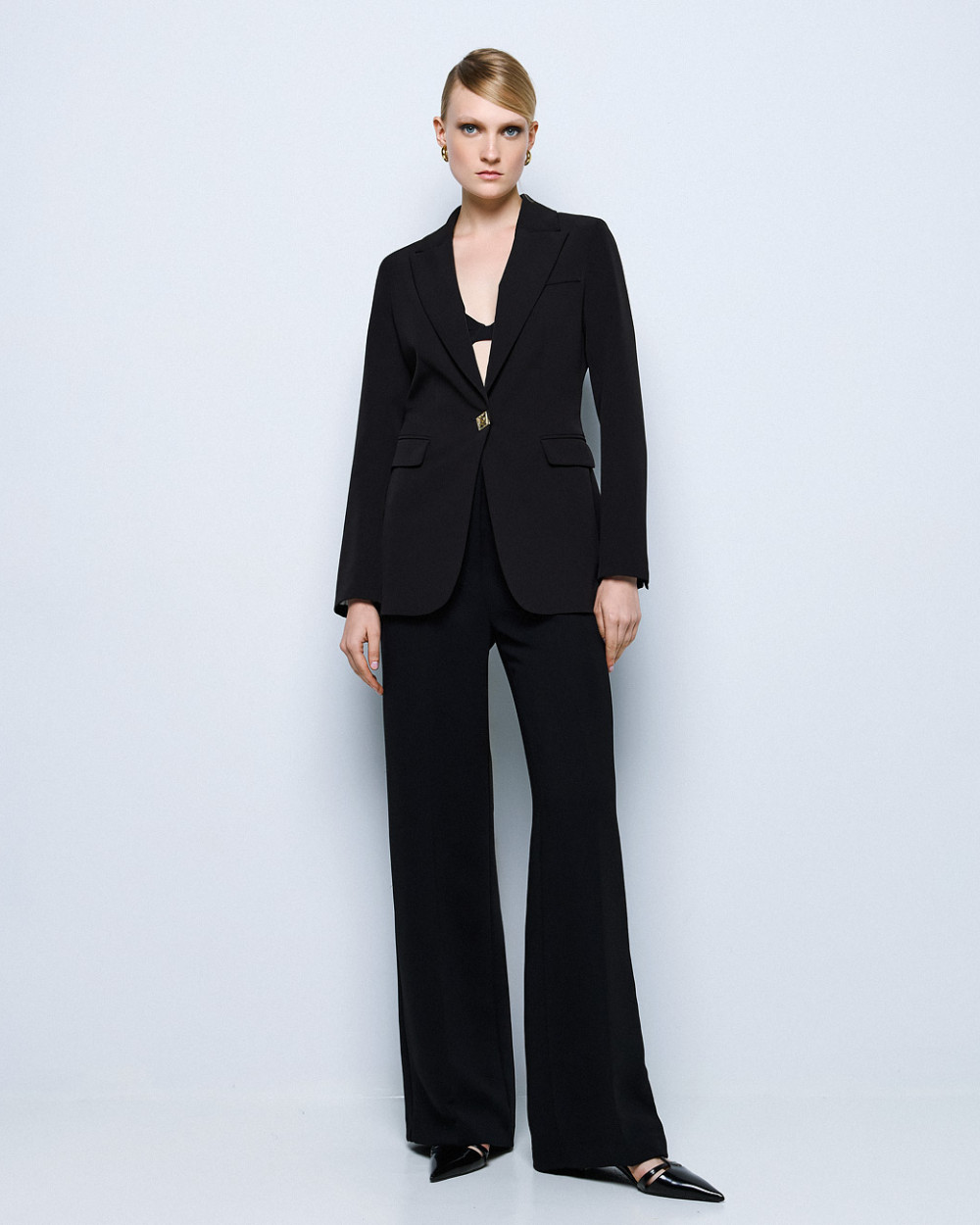 Ψηλόμεσο παντελόνι με τσέπες στο πλάι. Διαθέτει διακοσμητικές τσέπες με ρέλι πίσω και κλείνει με φερμουάρ και κουμπί μπροστά.