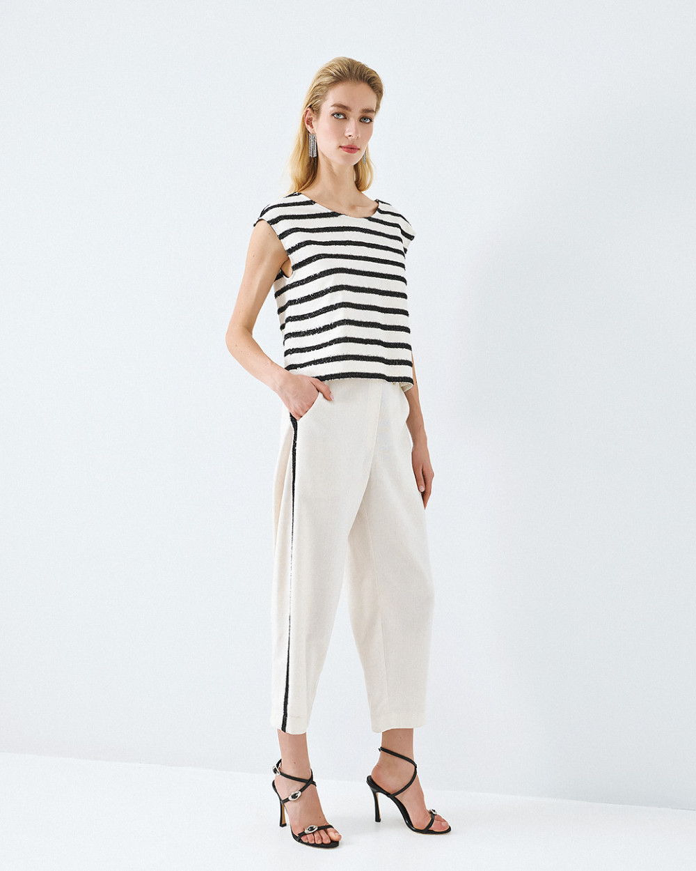 Access Fashion σετ με τοπ ριγέ με πούλιες