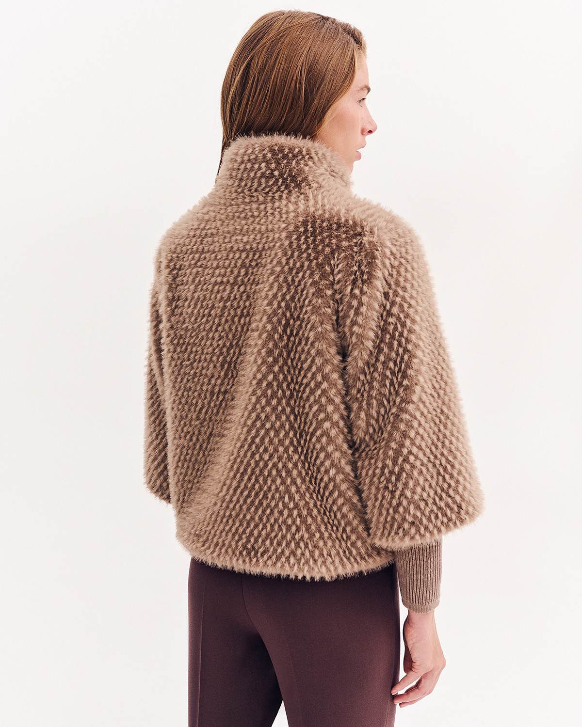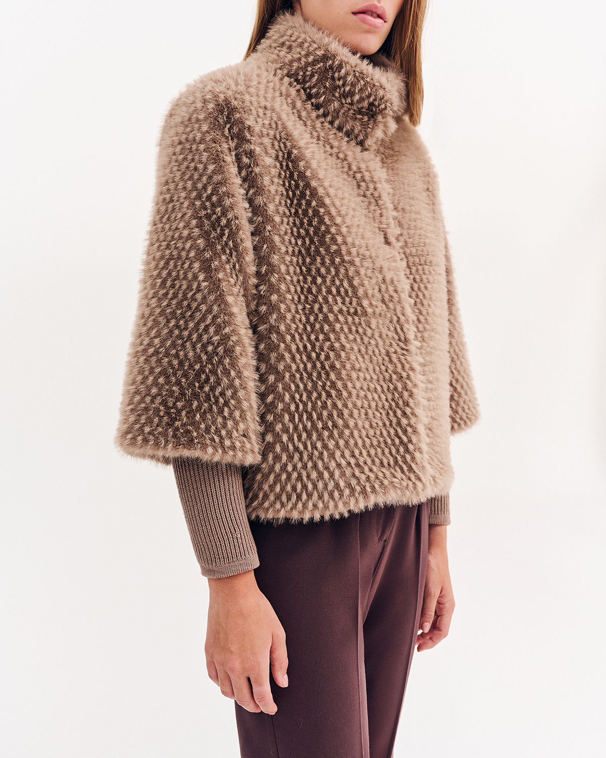 Γούνα κοντή με ριπ μανίκι αποσπώμενο, που αφήνει τρουακάρ μανίκι στη γούνα. Ψηλός λαιμός και κλείσιμο μπροστά με κρυφά κουμπιά. Κοφτές τσέπες.