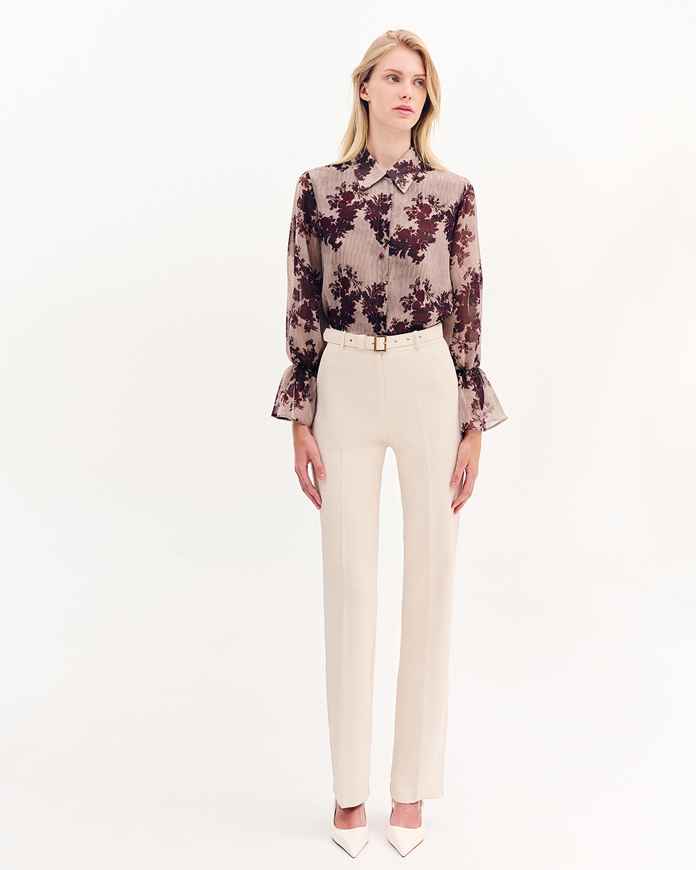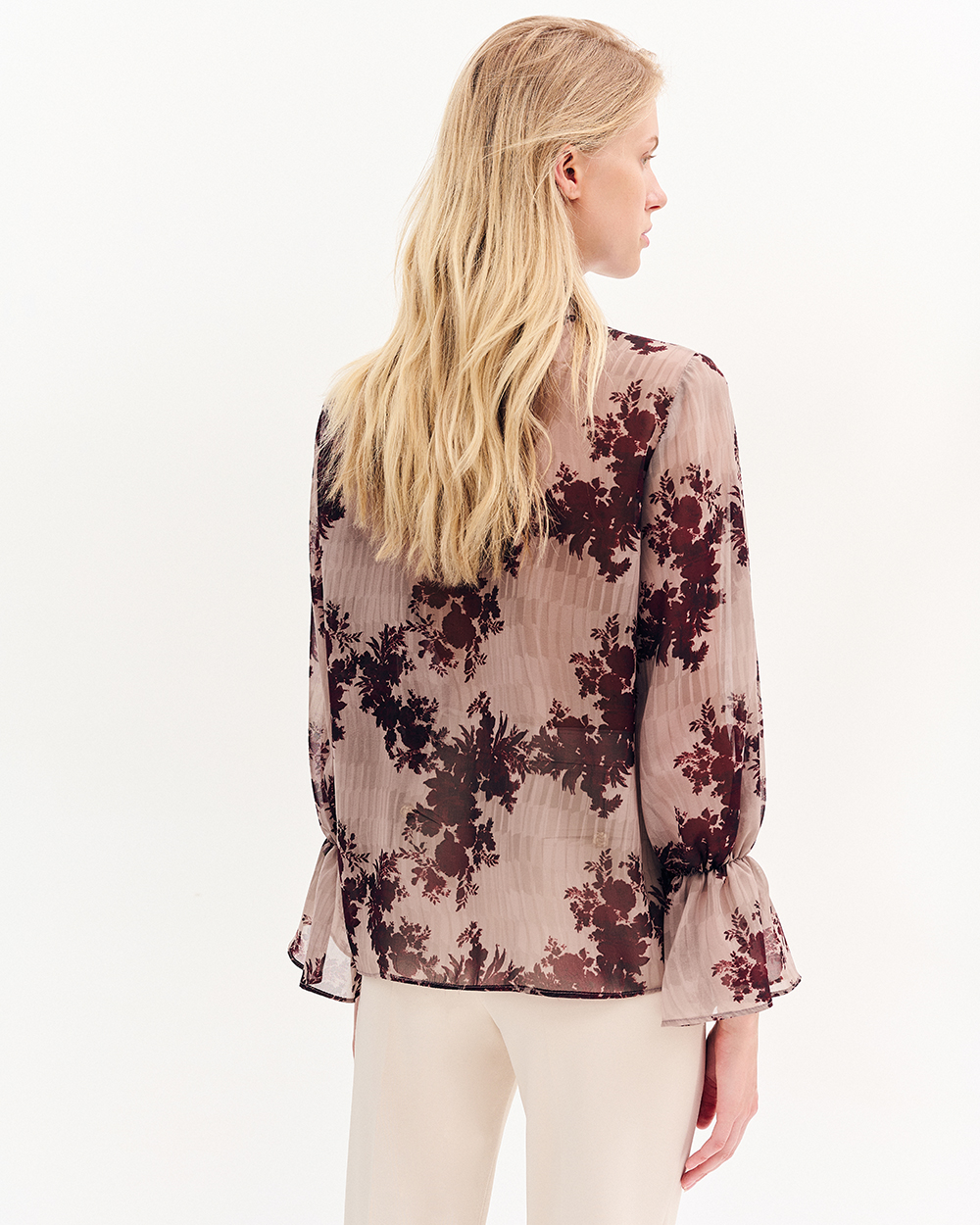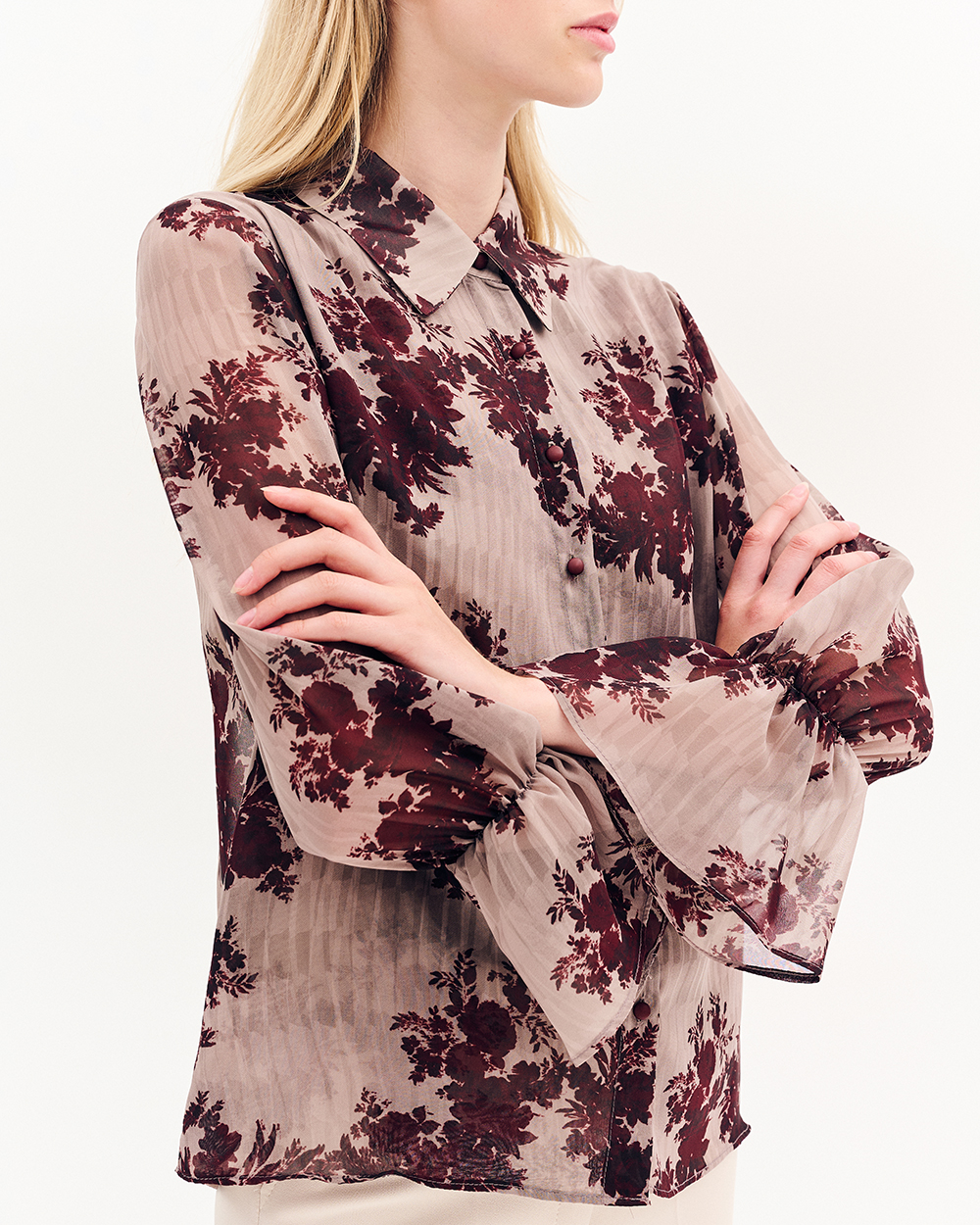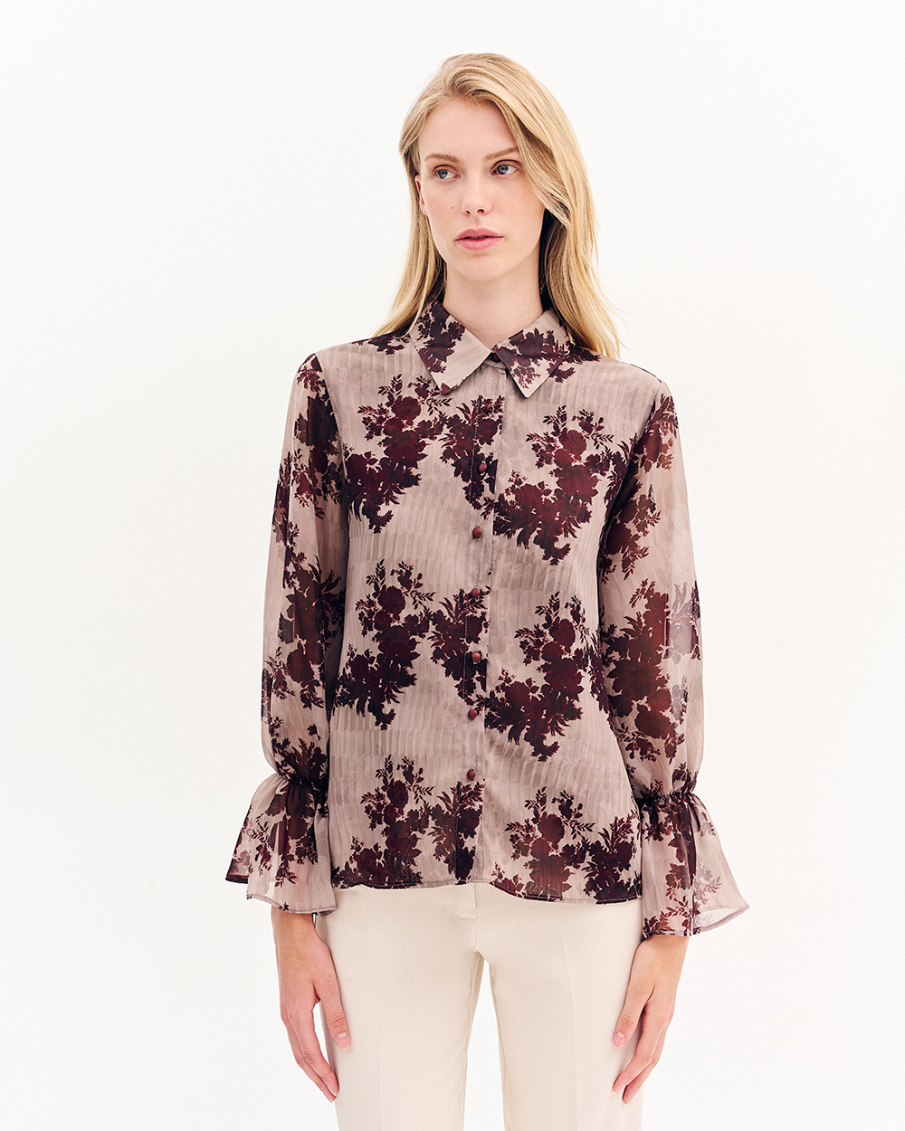 Πουκάμισο με floral σχέδιο, κλασικός γιακάς και λάστιχο πριν το τελείωμα του μανικιού.
