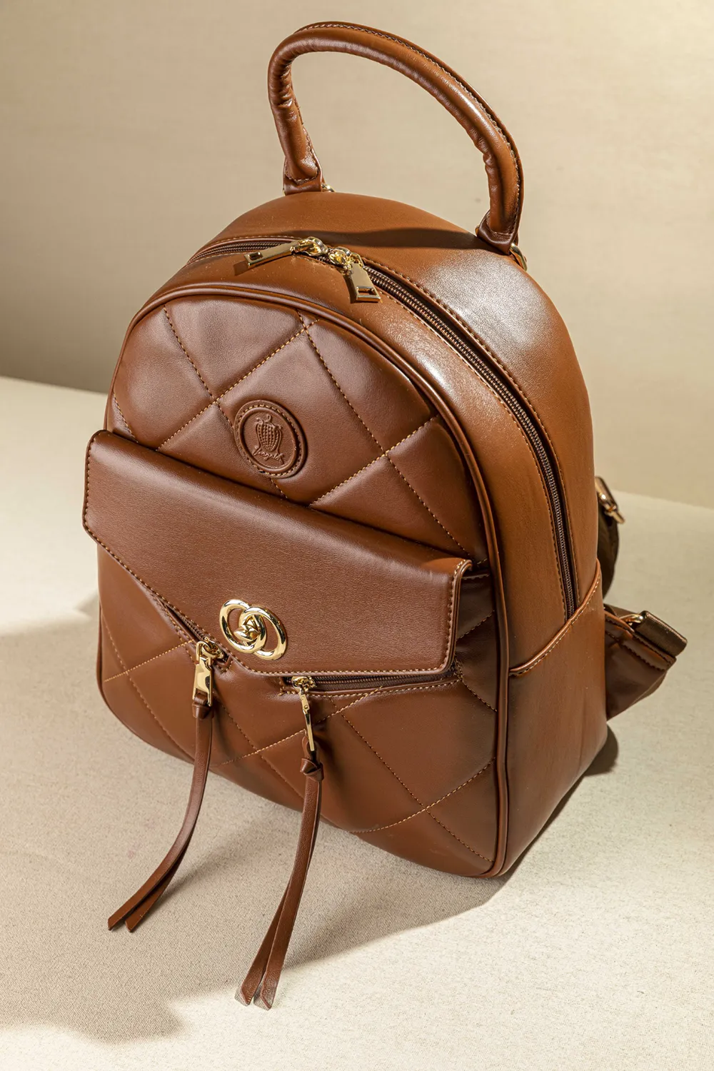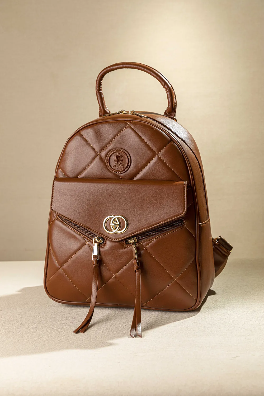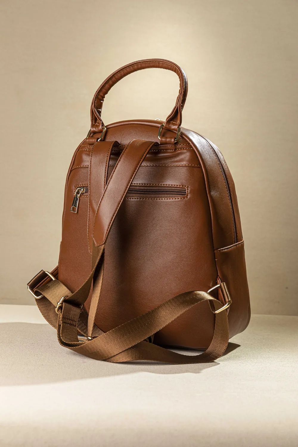 Μπροστά εξωτερικά δύο μικρά τσεπάκια με φερμουάρ και μια μεγαλύτερη θήκη που κλείνει με καπάκι με μεταλλική κλειδαριά.