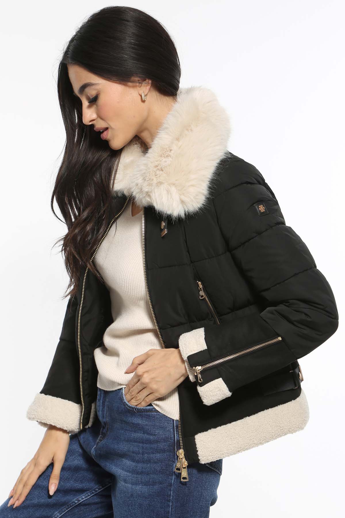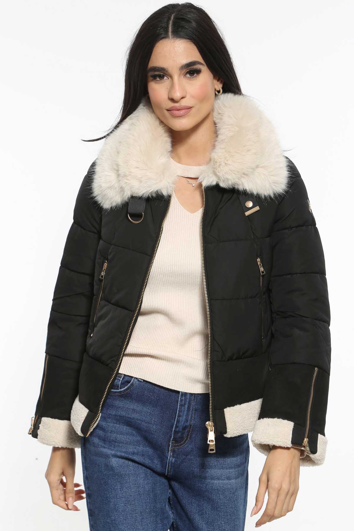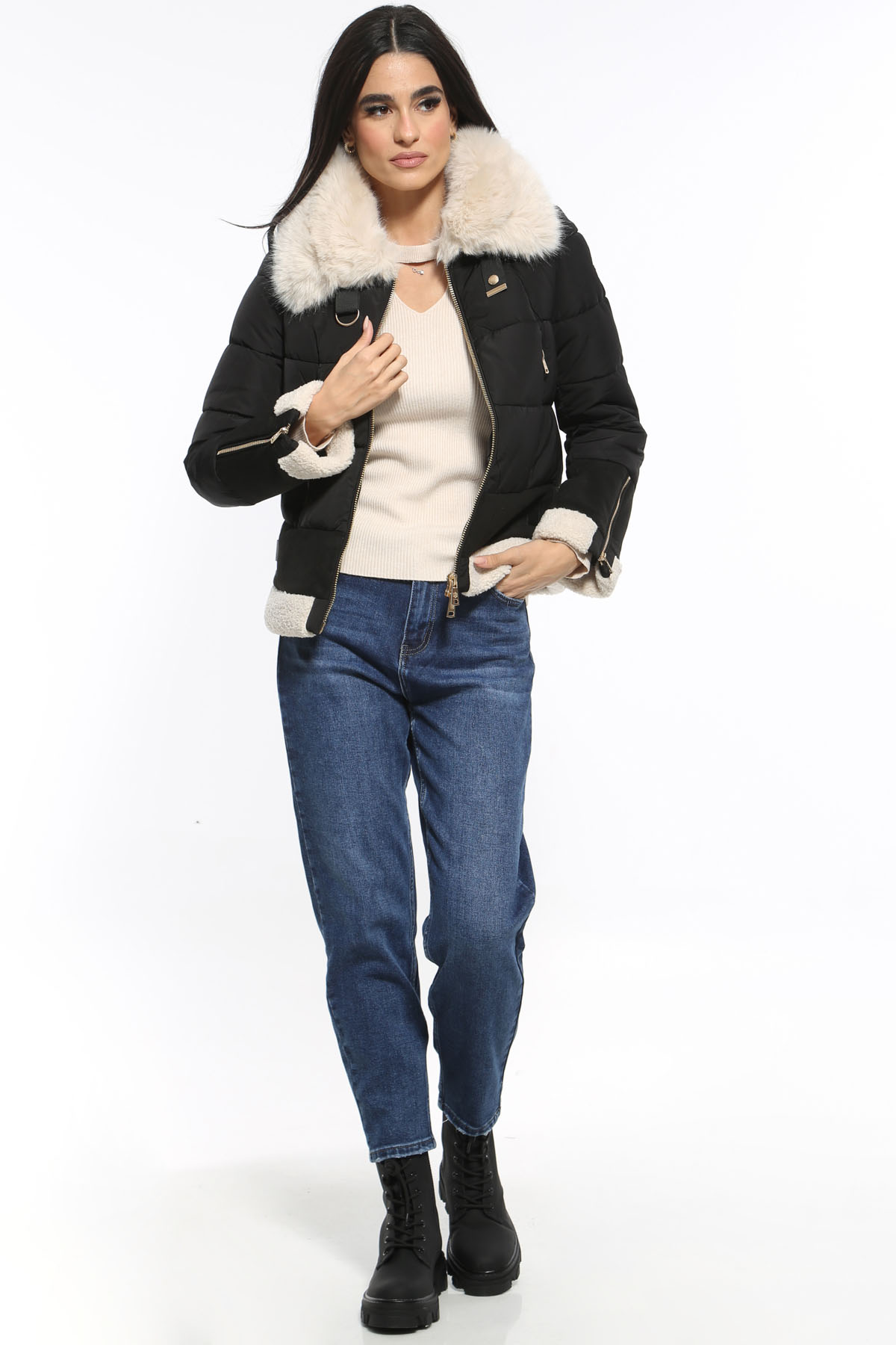Μπουφάν κοντό καπιτονέ με συνδιασμό υφασμάτων