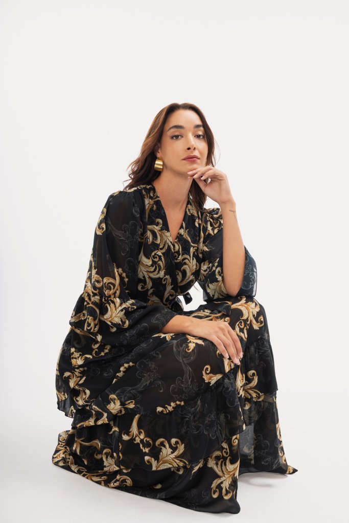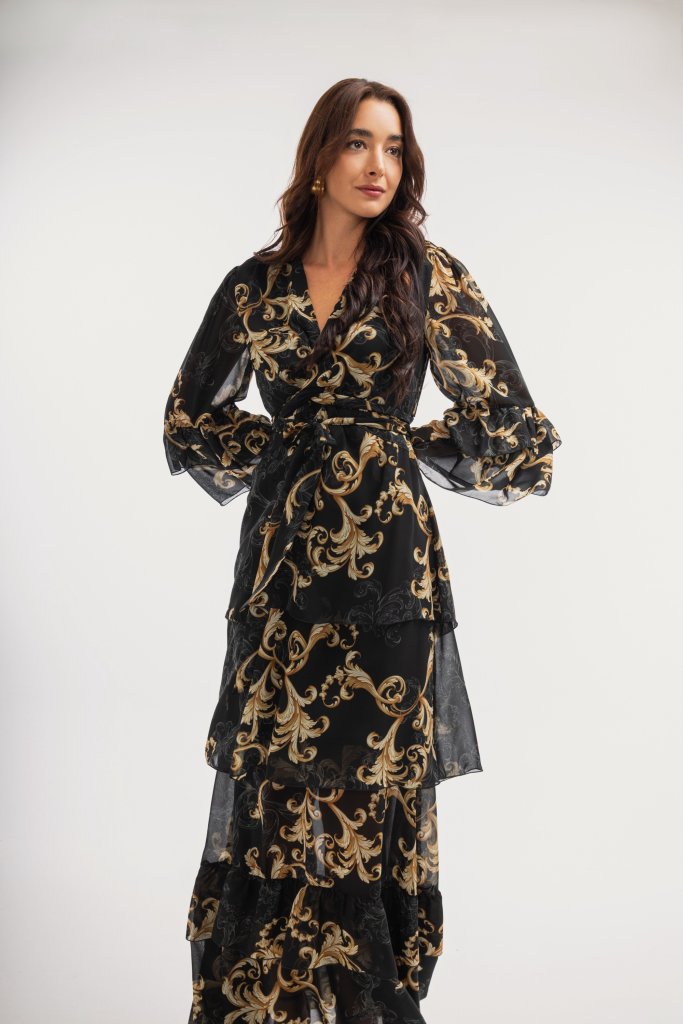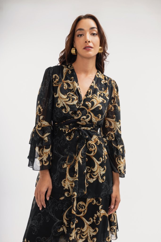 Open Fashion φόρεμα maxi κρουαζέ με δέσιμο στο πλάι εμπριμέ