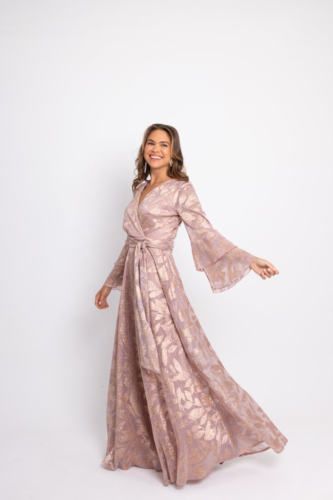 Open Fashion φόρεμα maxi κρουαζέ με χρυσά σχέδια
