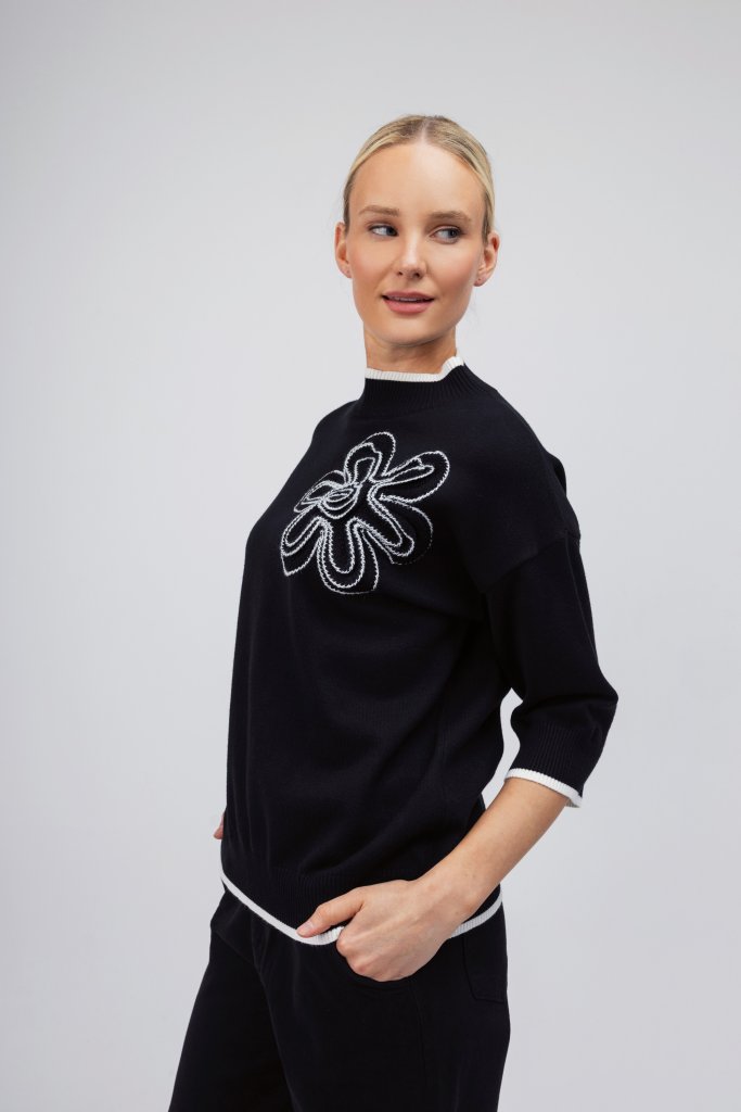 Πουλόβερ με σχέδιο κεντητό λουλούδι. Διαθέτει κοντά μανίκια και λευκές διακριτικές λεπτομέρείες.
