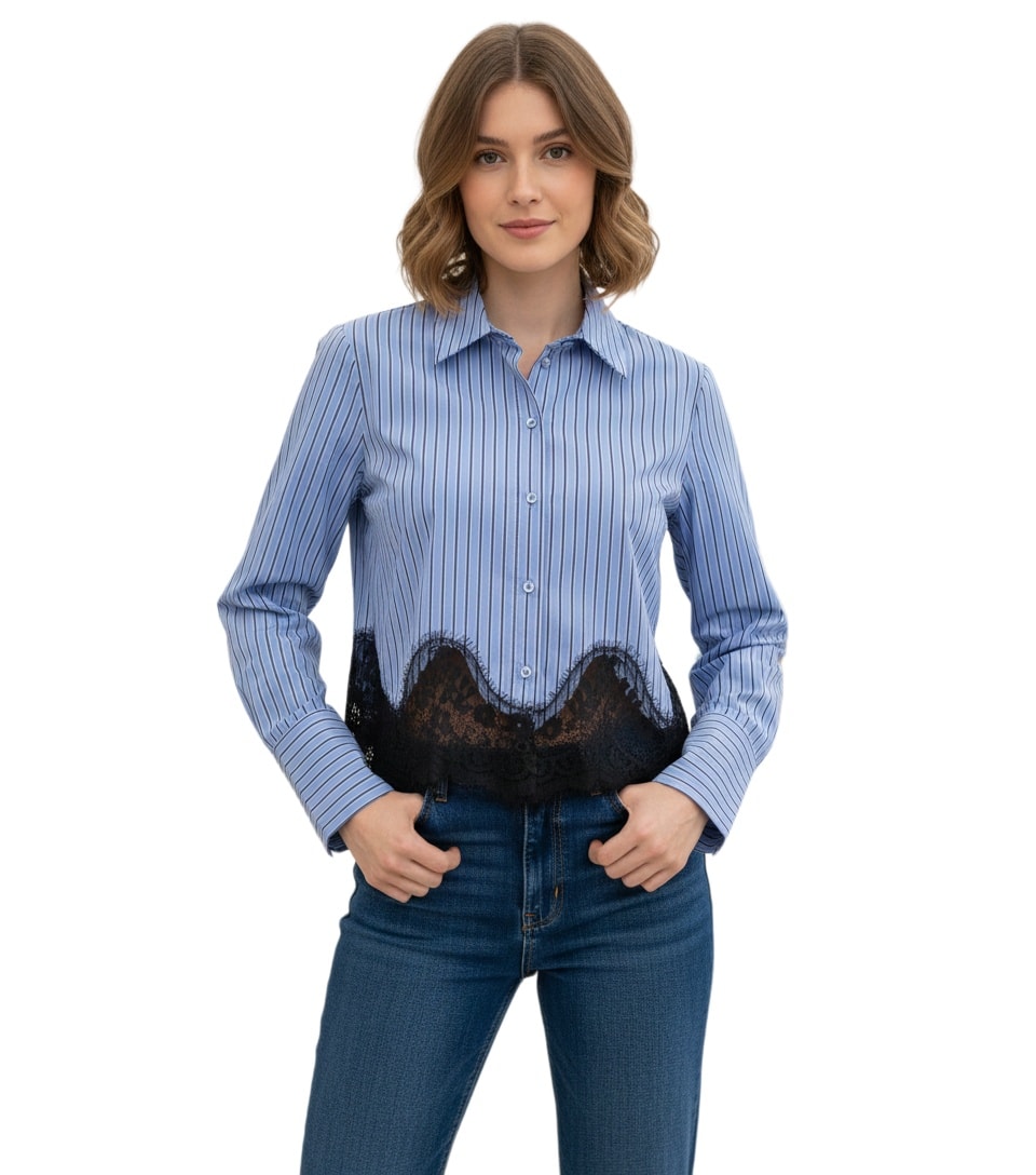 Πουκάμισο cropped ριγέ μακρυμάνικο με γιακά και τελείωμα δαντέλα.